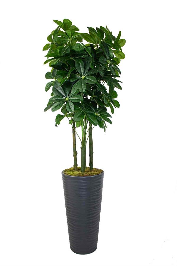 Yapay Ağaç Şeflore 170 cm Konik Saksı, doğal güzelliği evinizin ya da ofisinizin içine taşımanın en zarif yolu! 170 cm yüksekliği ile bu yapay şeflore ağacı, gerçeğinden ayırt edemeyeceğiniz bir tasarıma sahip. Her bir yaprağı, doğal şeflore ağaçlarından alınmış detaylarla bezeli.