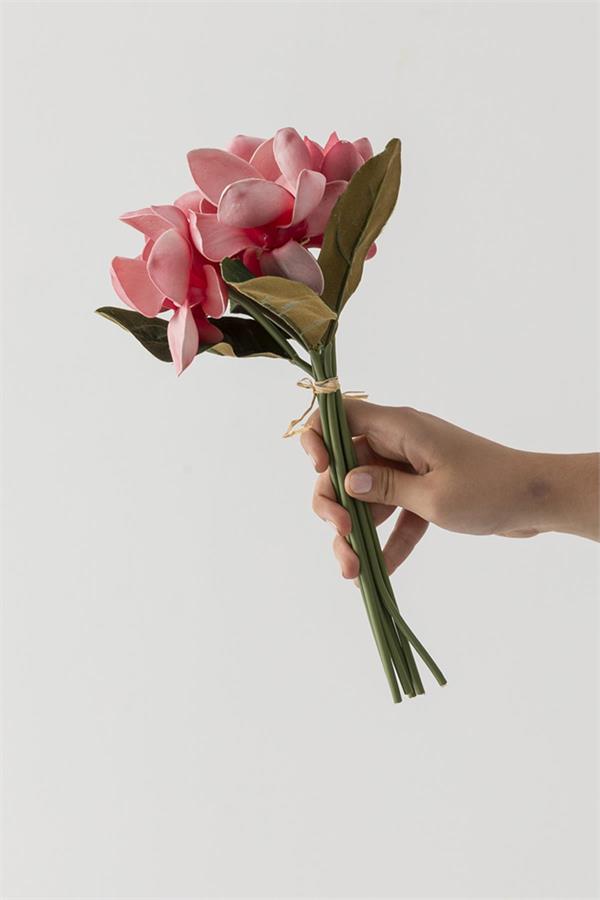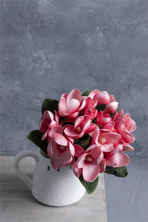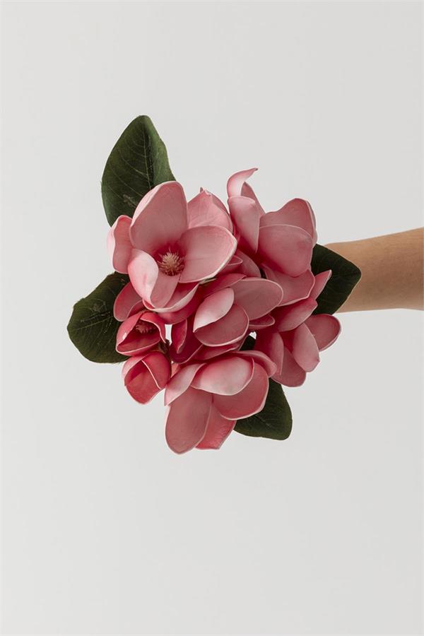 Güleç Yapay Çiçek Yapay Lüx Lateks Manolya Demeti 33cm Koyu Pembe 7 Kafa